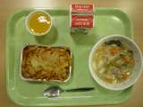 <献立> グラタン、ベーコンと野菜スープ、みかんゼリー <主な食材と産地> た...