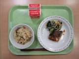 豚肉とごぼうのご飯、さばのごまだれ焼き、いそあえ、牛乳 ほうれんそう…千葉...