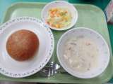 ビスキュイパン・クリームシチュー・サラダ・牛乳 (主な食材と産地) た...