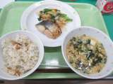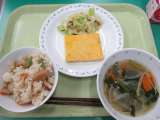 まめごはん・さわらの塩こうじ焼き・きゃべつのあっさりあえ・かきたまじる・牛乳 ...