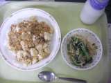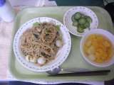 五目焼きそば 牛乳 きゅうりの甘酢かけ フルーツ白玉 焼きそばもフルーツも...