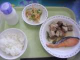 ご飯 牛乳 鮭の塩焼き 生揚げの含め煮 あえ物 <主な食材と産地...