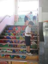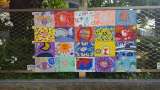 正門の脇に、4年生の作品を展示しました。図工の時間、アクリル絵の具を使って「命を...