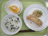 わかめとじゃこのごはん 牛乳 春巻き もやしときゅうりのごま風味 河内晩柑 豚...