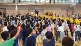運動会の全校練習です。応援の練習では、応援団が一生懸命に応援に励んでいます。み...