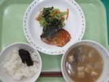 ごはん・さばの韓国風焼き・ごまあえ・さつまじる・てづくりのりの佃煮・牛乳 ...