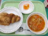 セサミパン・スペイン風オムレツ・野菜スープ・手作りパインジャム・牛乳 主な...