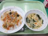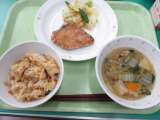 中華おこわ・かつおのたつたあげ・春野菜のサラダ・中華風スープ・ 牛乳 ...