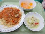 スパゲティイタリア—ノ・キャベツのサラダ・フルーツ寒天・牛乳 主な食材と産...