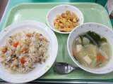 チャーハン・わかめスープ・キャラメルポテト・牛乳 主な食材と産地 たま...