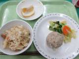 五目ごはん・さけのちゃんちゃんやき・もやしのごま風味・清美オレンジ・牛乳 ...