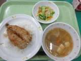ごはん・イカのフライ・やさいのごまみそかけ・かき玉汁・牛乳 主な食材と産...