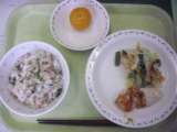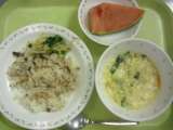 ビビンバ 牛乳 ニラ玉スープ くだもの(小玉すいか) <主な食材と産地> しょ...