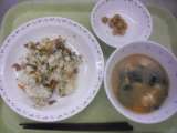 豚肉とごぼうのご飯 牛乳 大豆とじゃこの甘辛揚げ 味噌汁 <主な食材と...