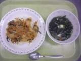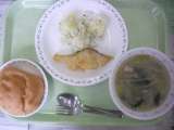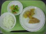 米粉のぱん 牛乳 魚のカレー揚げ パセリポテト ベーコンと野菜のスープ <...