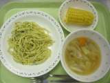 バジリコスパゲティー 牛乳 白いんげん豆のスープ 蒸しとうもろこし <主な食...