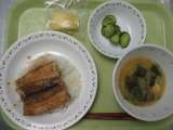 魚の蒲焼き 牛乳 きゅうりの甘酢かけ ...