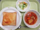 ガーリックトースト 牛乳 トマトシチュー フレンチサラダ <主な食材と産地> ...