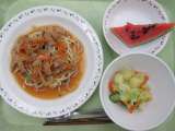 冷やし中華 牛乳 ポテト入りフレンチサラダ 果物(小玉すいか) <主な食材と産...