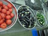 夏野菜カレーライス 牛乳 こんにゃくサラダ トマト・ズッキーニ・なすを使ってカ...