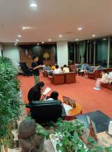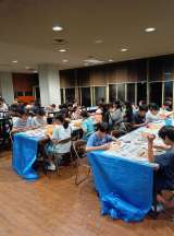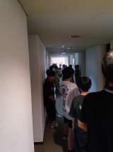 避難訓練の様子です。楽しい生活にするために、宿舎の方からの注意事項も伝えられまし...