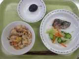 秋の香りごはん 牛乳 秋刀魚の松前煮 野菜の甘酢かけ プルーン くり・さつまい...