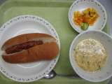 セルフウインナーサンド 牛乳 パンプキンサラダ 卵スープ 炒めたキャベツとウイ...