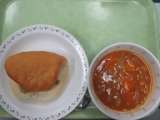 肉じゃがコロッケパン・ミネストローネスープ・牛乳 (主な食材の産地9 ...