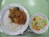なすとトマトのカレーライス・コーンサラダ・牛乳 (主な食材の産地) ...