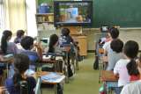 3年生の教室です。「こまを楽しむ」という学習について、自分の考えを友達に伝え...
