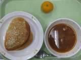 焼きカレーパン・まめまめスープ・冷凍みかん・牛乳 主な食材の産地 豚...