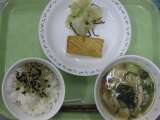 ごはん・ふりかけ・いかのてりやき・きゃべつの塩昆布かけ・野菜スープ 主な...