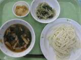 肉うどん・じゃことわかめのサラダ・月見だんご・牛乳 今日は 中秋の名月です...