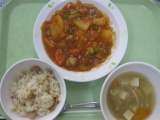 ガーリックライス・とりにくのトマトソース・野菜スープ・牛乳 主な食材の産地...