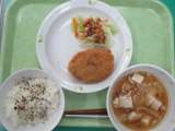 ごまごはん・肉じゃがコロッケ・ボイルキャベツ・けんちん汁・牛乳 主な食材...