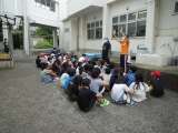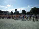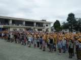 学年バンダナがとてもきれいです。歌声が青空に響きます。
