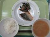 わかめとじゃこのごはん・さわらの塩麹焼き・ごまあえ・とんじる・牛乳 主な食...