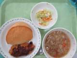 セルフフィッシュサンド・キャベツサラダ・マッシュルームのトマトスープ・牛乳 ...