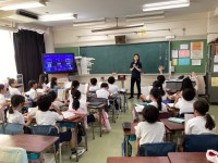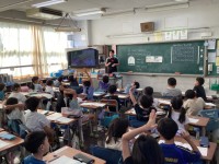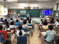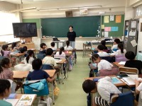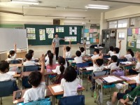 4年生の英語の授業です。今日は自分のタイムスケジュールを伝える学習です。元気に話...