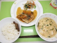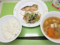 ごはん・牛乳・魚の西京焼き(さごし)・ごまあえ・根菜みそ汁