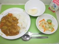 ひよこ豆のカレーライス・牛乳・ひとしお野菜・くだもの(なし)