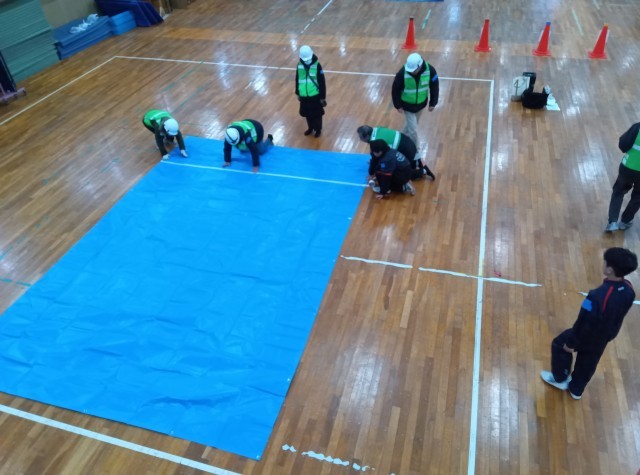 13日の土曜日に東京テラスの方たちが避難所開設訓練を行いました。