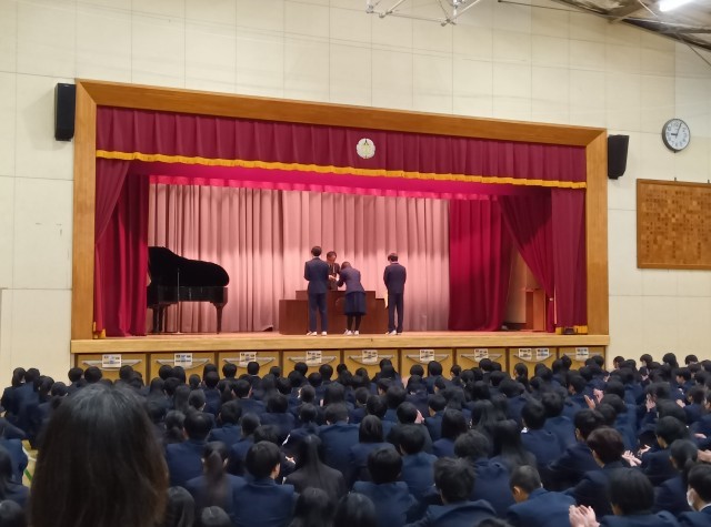 校長先生のお話や部活動の表彰、そして生徒支援主任の先生からのお話。どちらの先生の話も三学期に向けて、大切なものばかりでした。