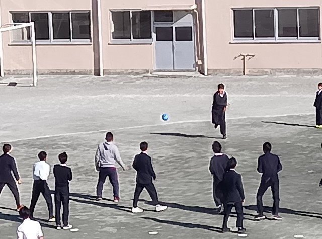 ドッヂボールや手つなぎ鬼など強風の中楽しく遊びました。