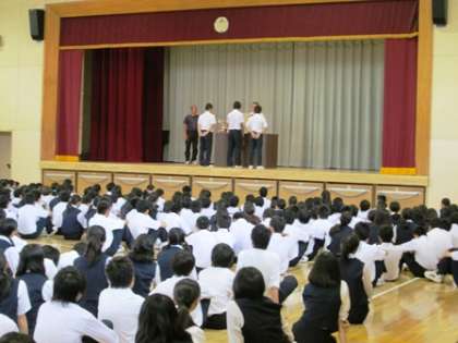 校長先生から、先日のセーフティー教室に関連するサイバー犯罪についてのお話、生活指導の先生から、気付かないでやってしまっているかも知れない法律違反についてのお話がありました。