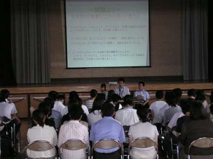 その後、体育館で、小・中学校で実施した「学習習得確認調査」の