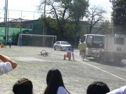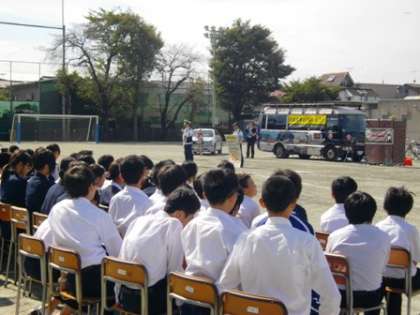 初めはふざけていた生徒もいましたが、スタントマンの実演が始まると、皆真剣に見学をしていました。