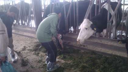 午前中は牛やヤギの餌やり、牛の乳絞りをたいけんしてきました。