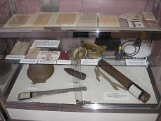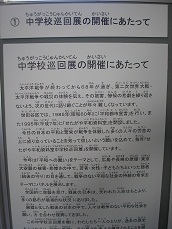 校舎をつなぐ二階の渡り廊下で「平和資料巡回展」を実施しています。
