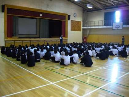 生徒たちは、校外学習の目的や概要を真剣に聴いていました。